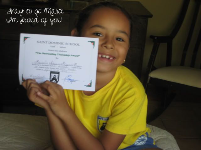 Marcella was the only one in her class to get this award.  She got all A's.  Marce, sorry I forgot to pick you up early today.